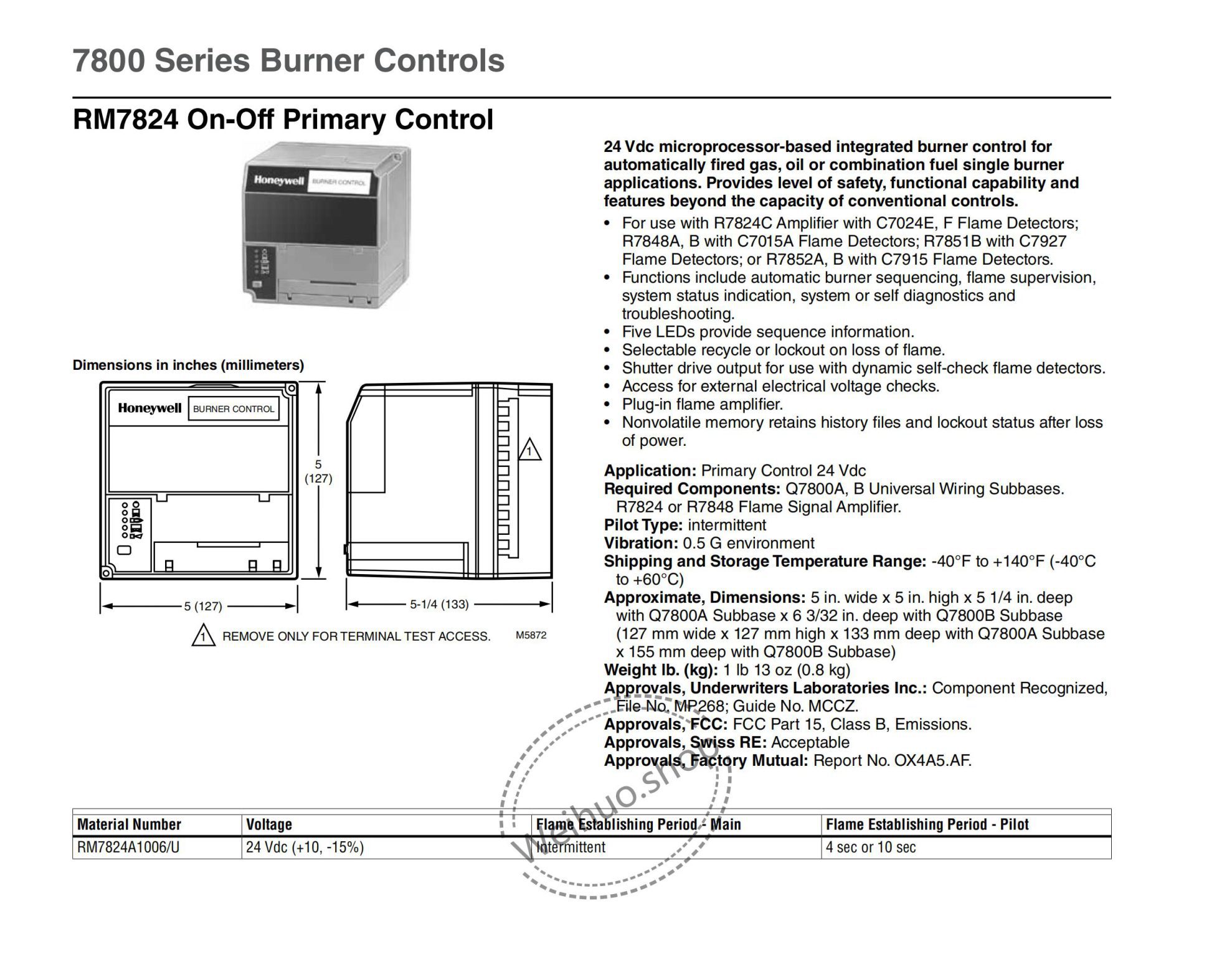 • For use with R7824C Amplifier with C7024E, F Flame Detectors;