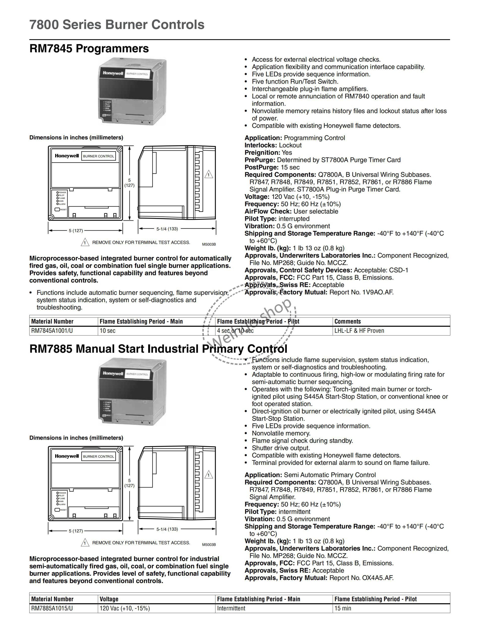 • Operates with the following: Torch-ignited main burner or torchignited pilot using S445A Start-Stop Station, or conventional knee or