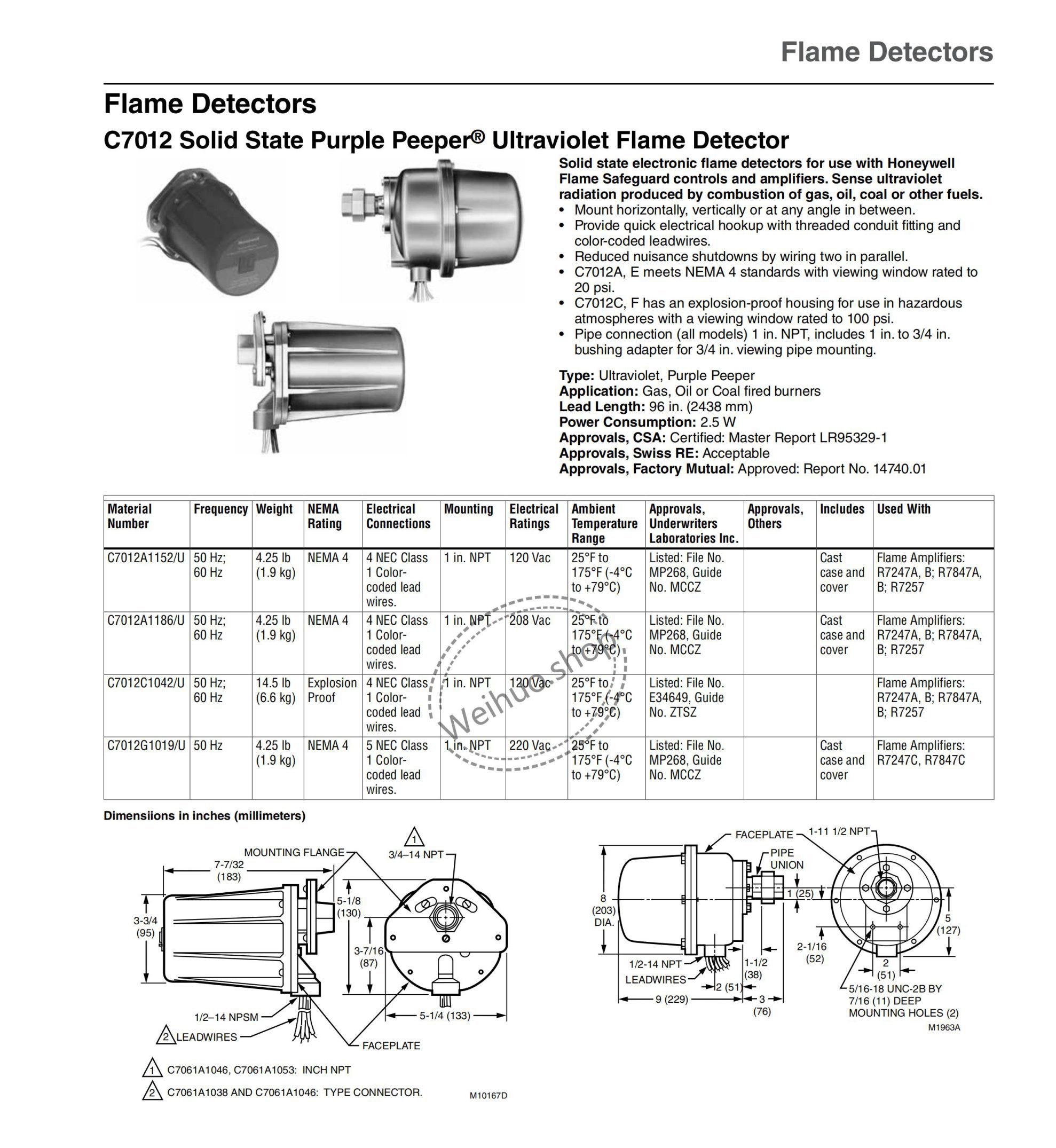 (Save $43.00)C7012 Solid State Purple Peeper® Ultraviolet Flame Detector