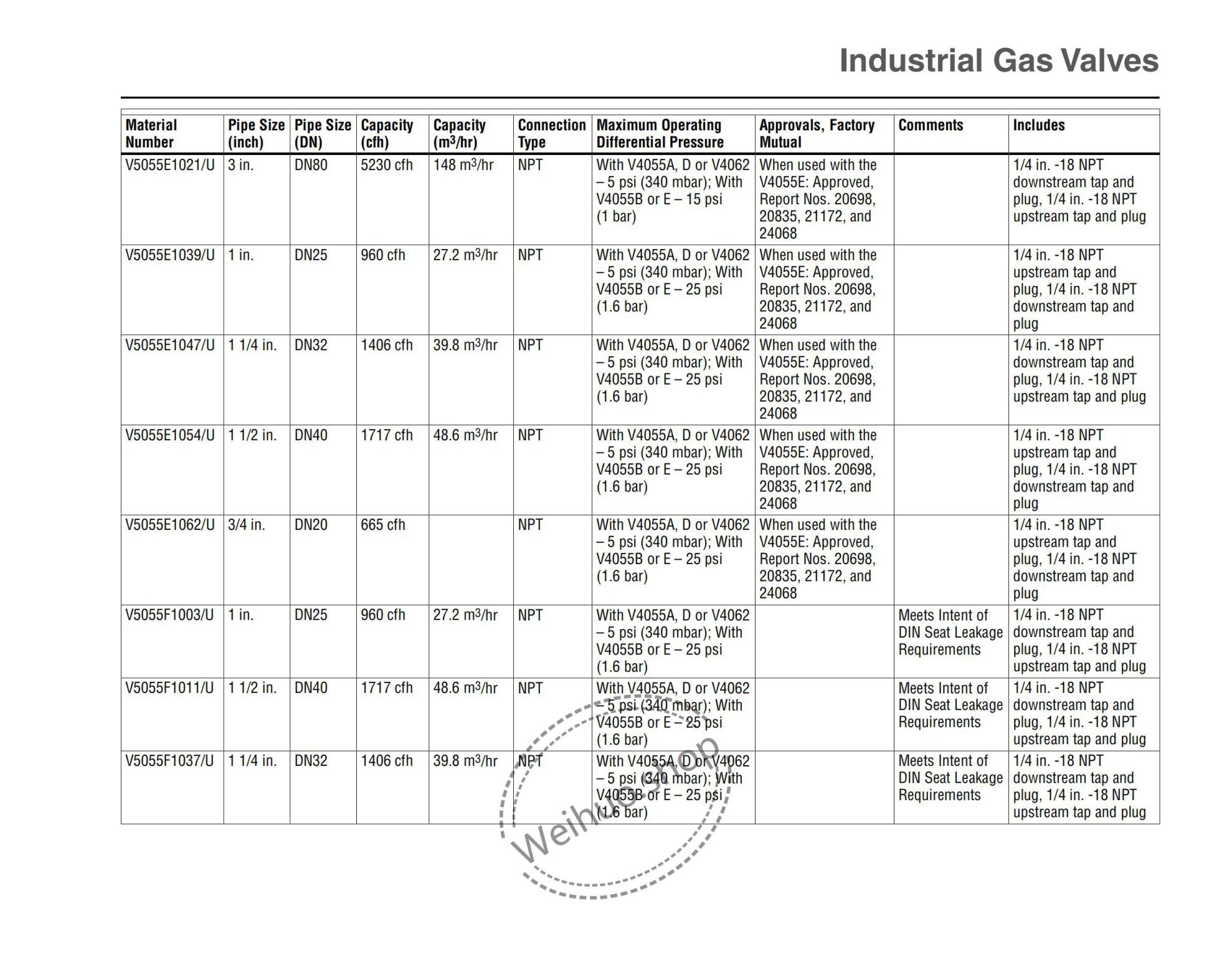 • Approvals, Factory Mutual: When used with the V4055E: Approved, Report                                                 Nos. 20698, 20835, 21172, and 24068