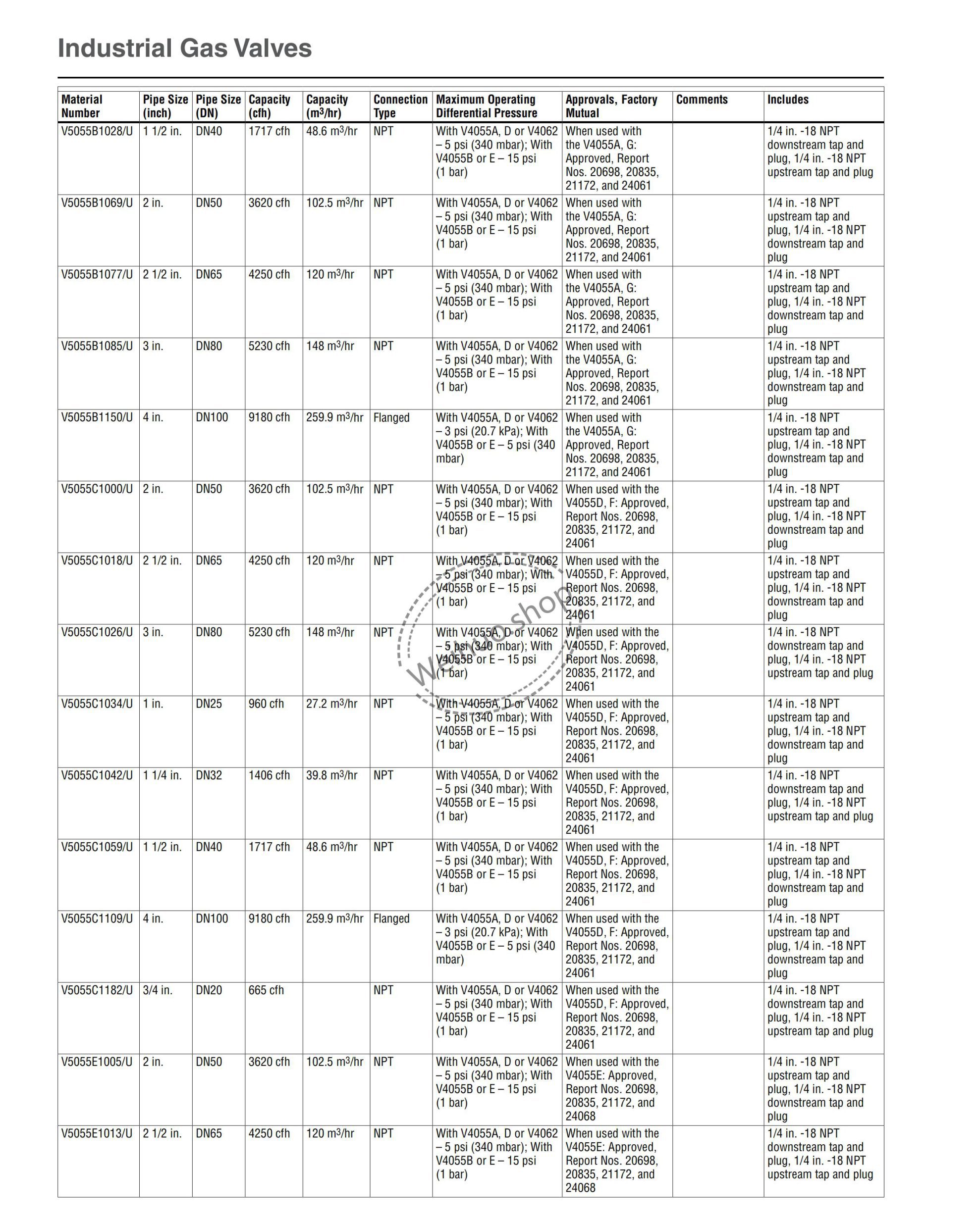 • Approvals, Factory Mutual: When used with the V4055A, G: Approved, Report