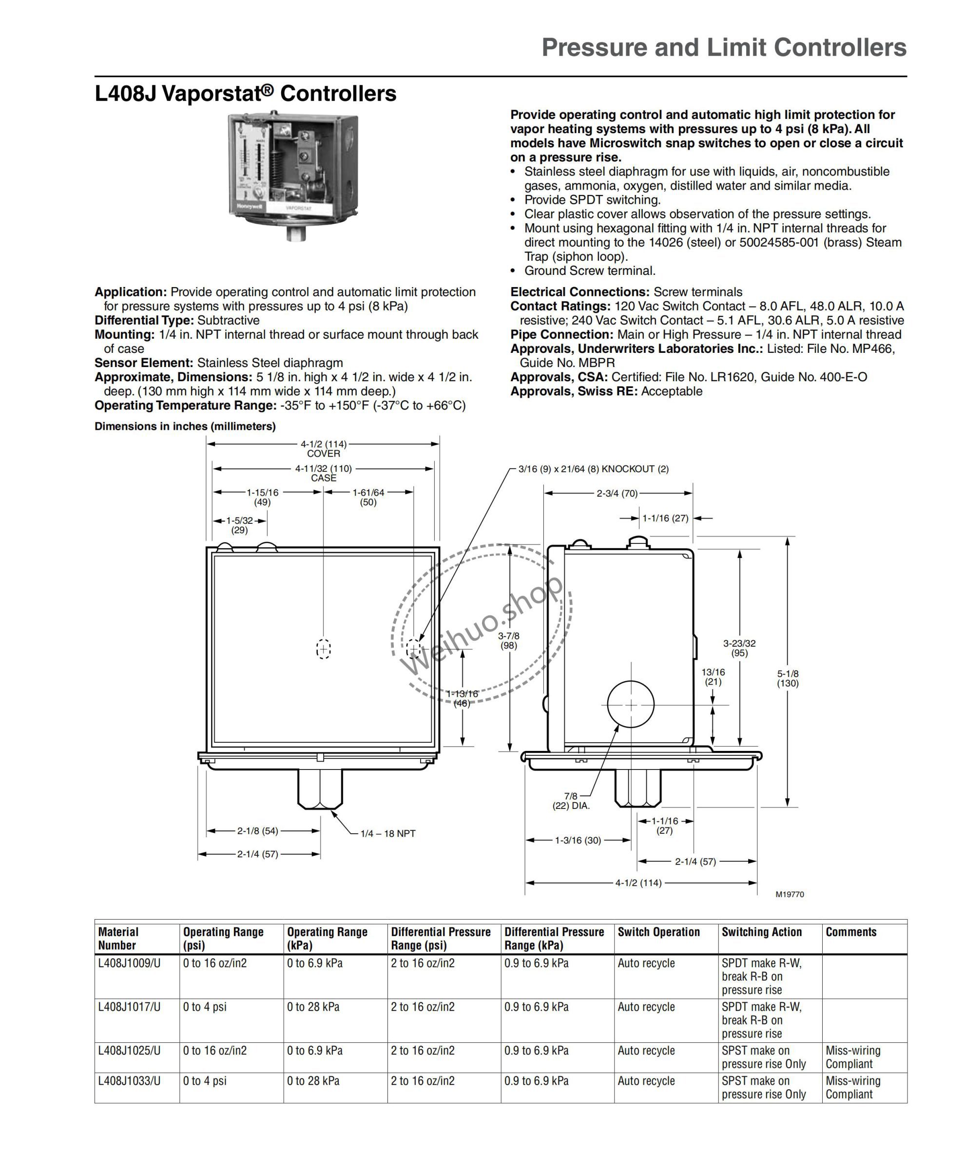 • Stainless steel diaphragm for use with liquids, air, noncombustible