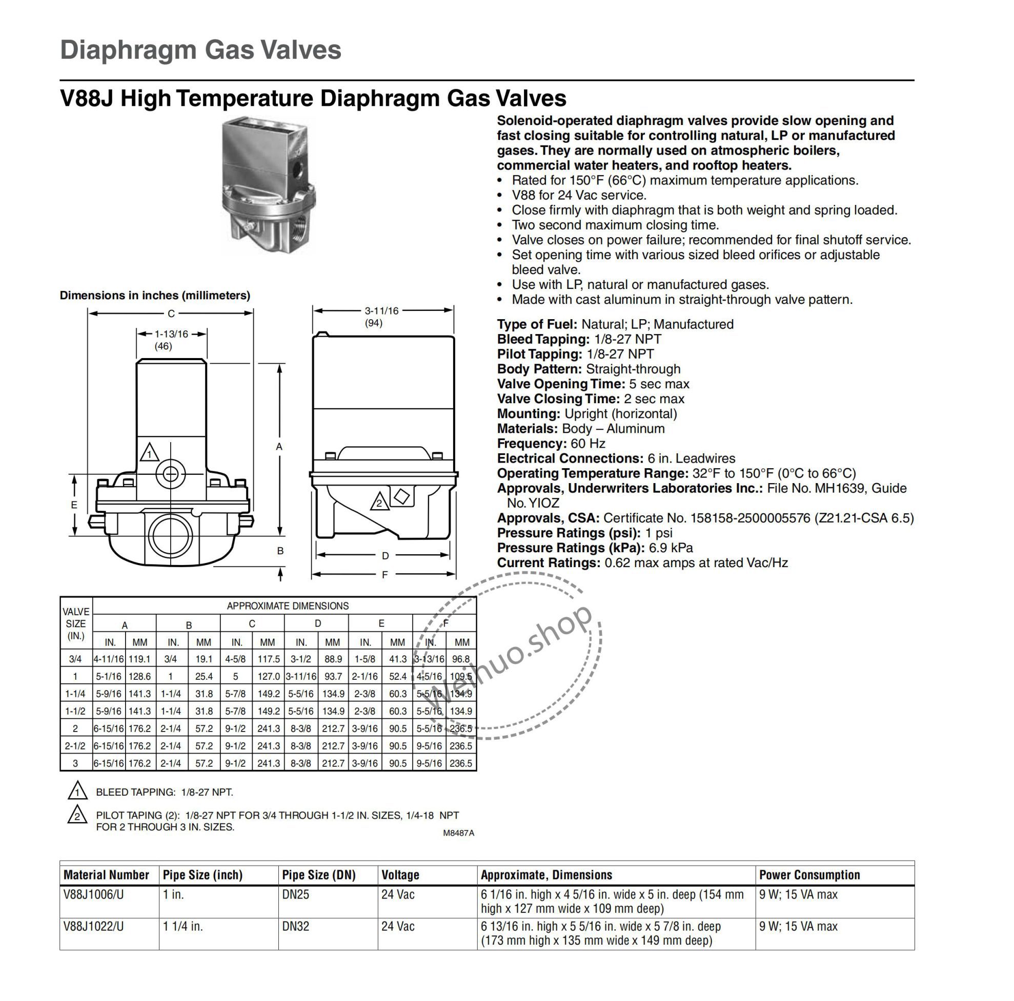 (Save $51.00)V88J High Temperature Diaphragm Gas Valves