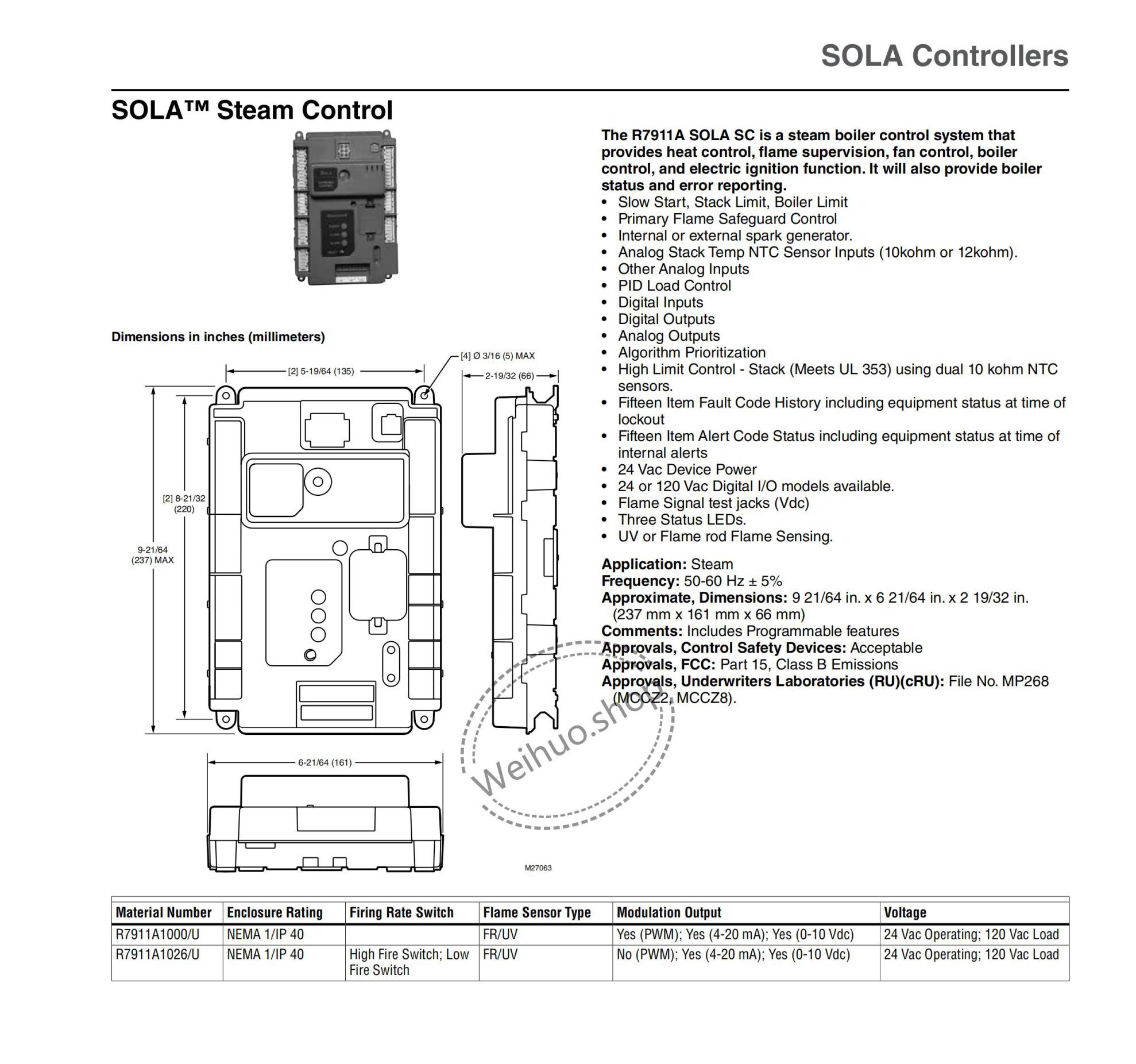 Honeywell SOLA Controllers – SOLA™ Steam Control R7911A1026/U Module