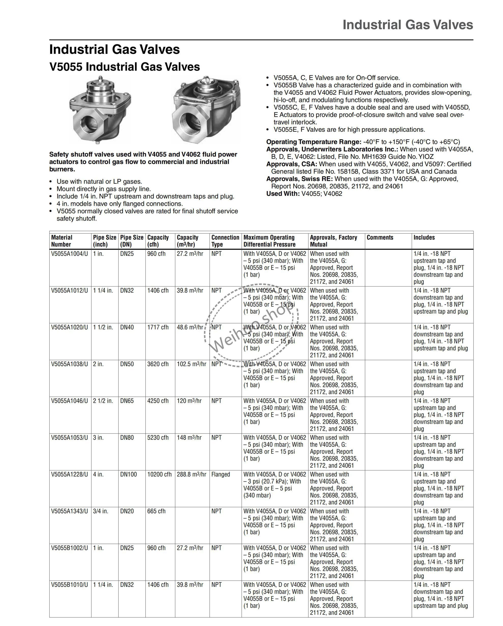 safety shutoff.• V5055A, C, E Valves are for On-Off service.